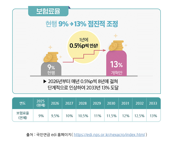 1 . 국민연금 : 단계정 인상 시작 ( 4.5% → 4.75% )